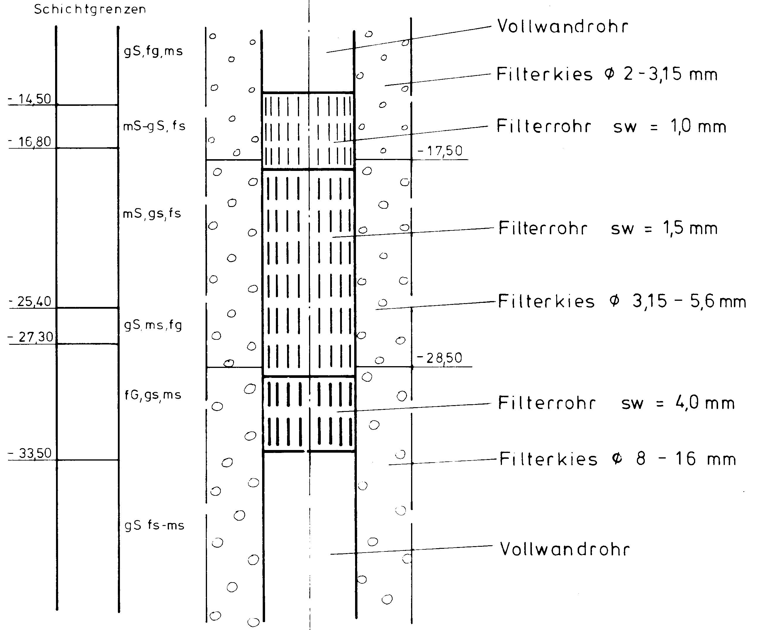 Abb. 3: Ausbauplan für den Filterbereich der Brunnenbohrung.
