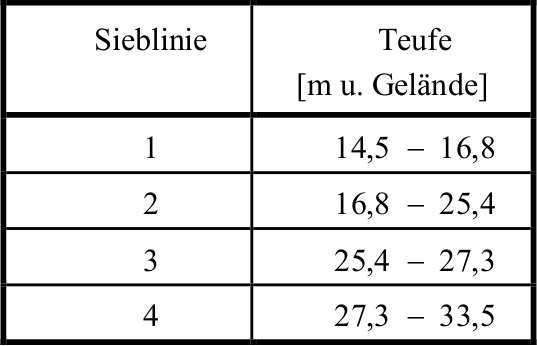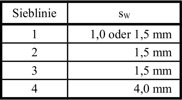 Die Schlitzweiten werden anhand der Beziehung sw = 0,5 · di abgeschätzt. Die Schlitzweiten für eine einfache Kiesschüttung sind in Tab. 7 zusammengefasst.