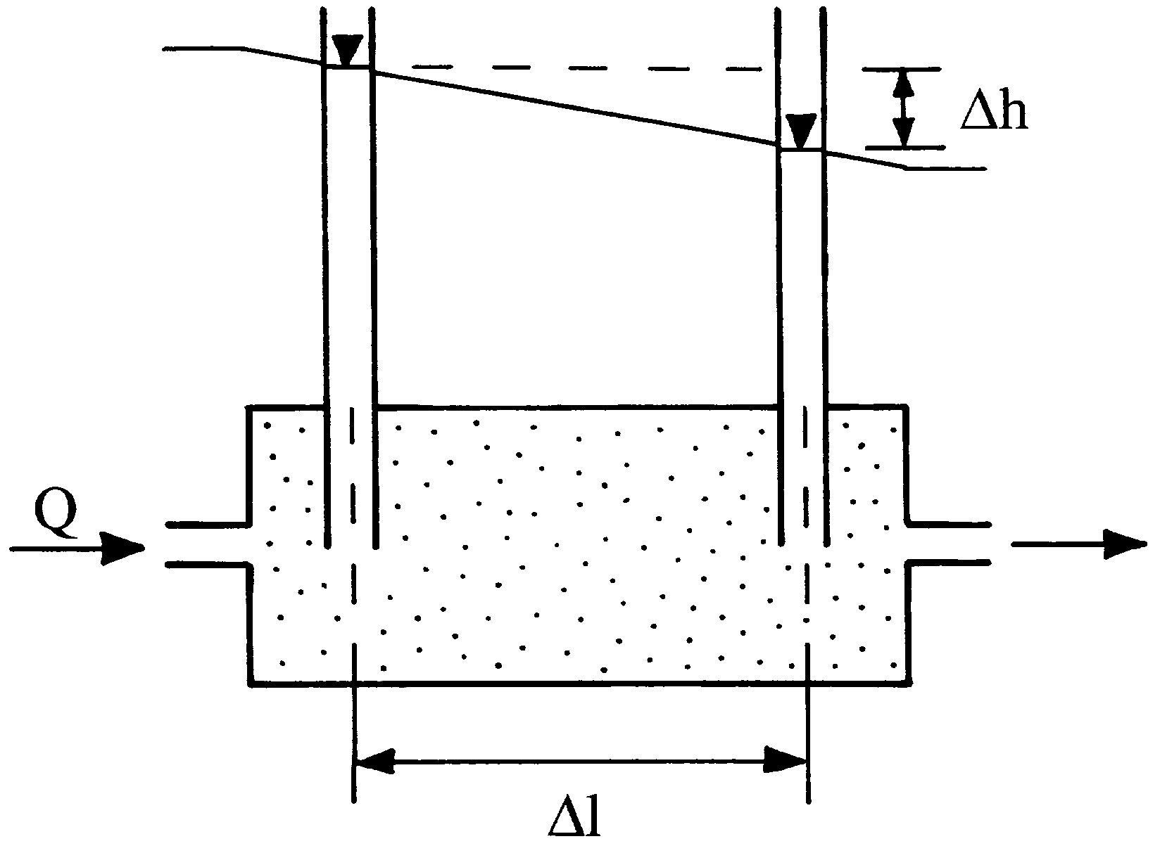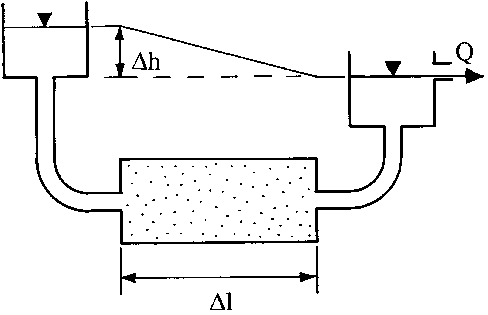Der Quotient Δh/Δl ist der hydraulische Gradient I. Damit ergibt sich folgende Gleichung, die als das Gesetz von Darcy bezeichnet wird: