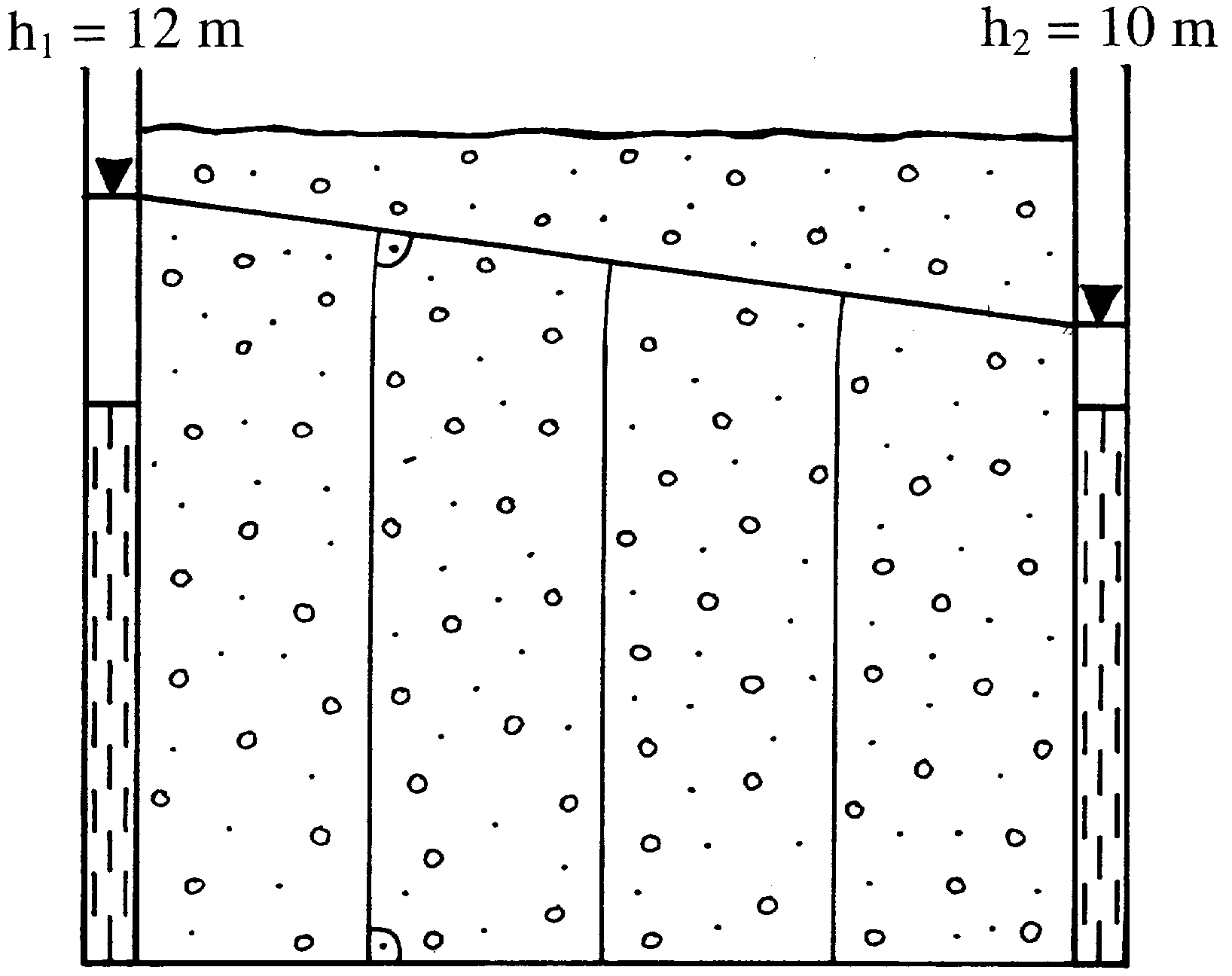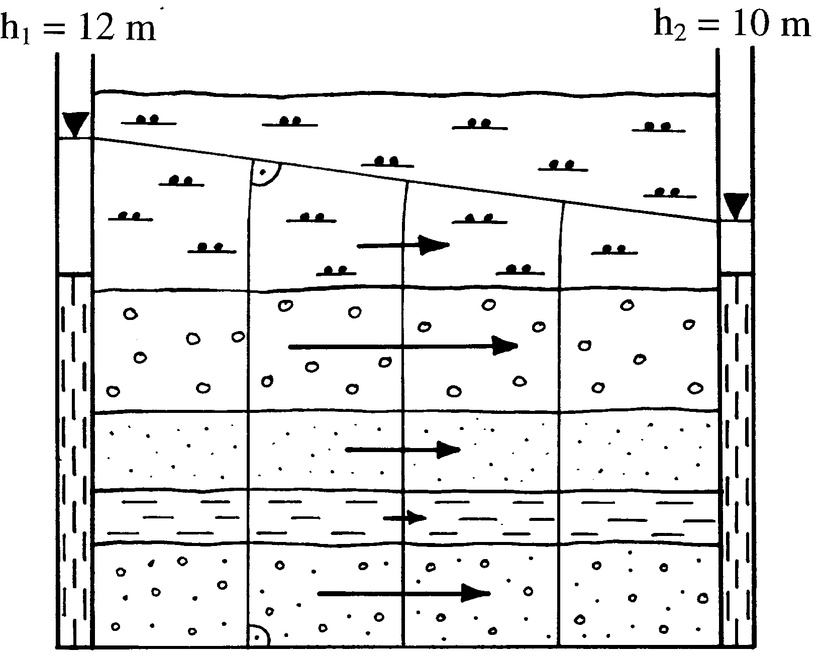 Abb. 13: Schnitt durch einen artesisch gespannten Grundwasserleiter.