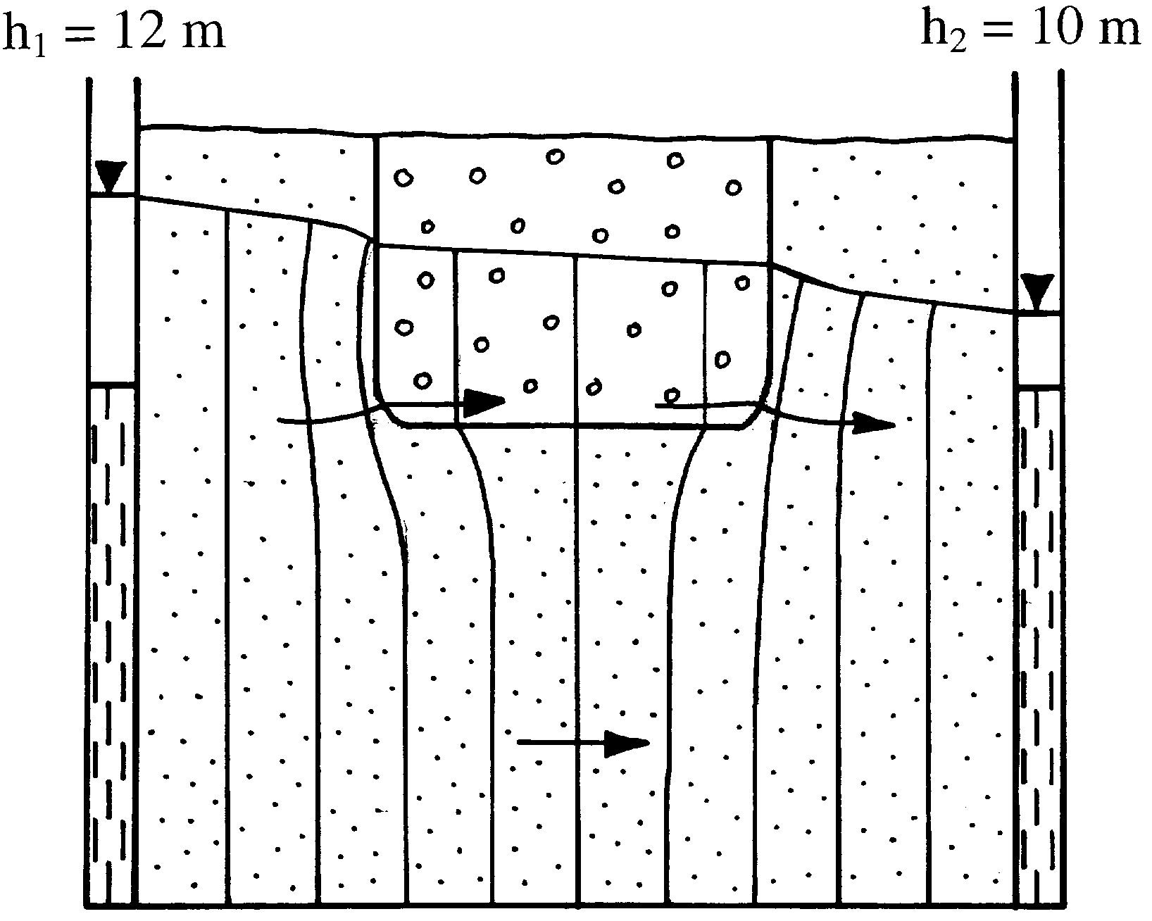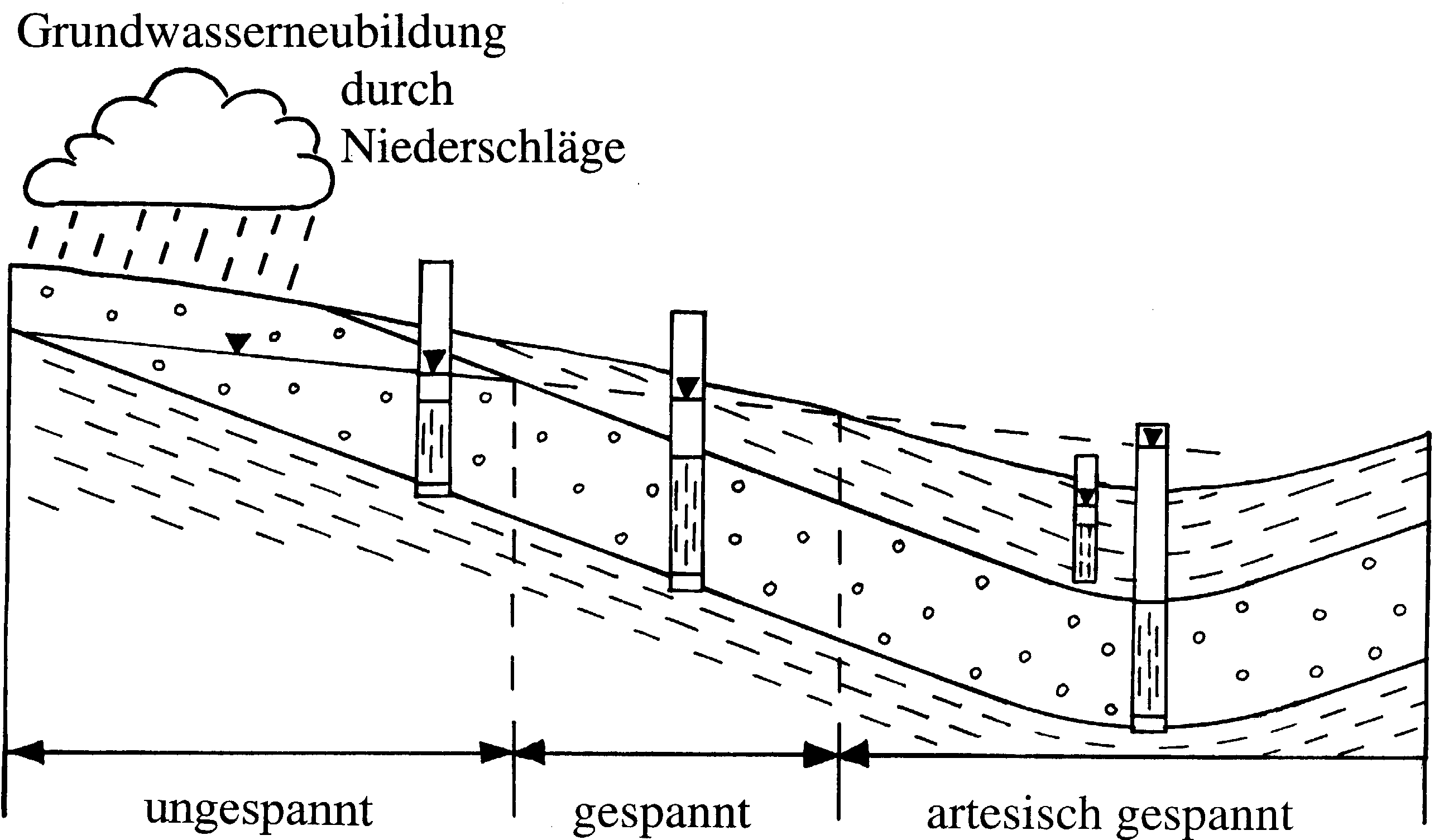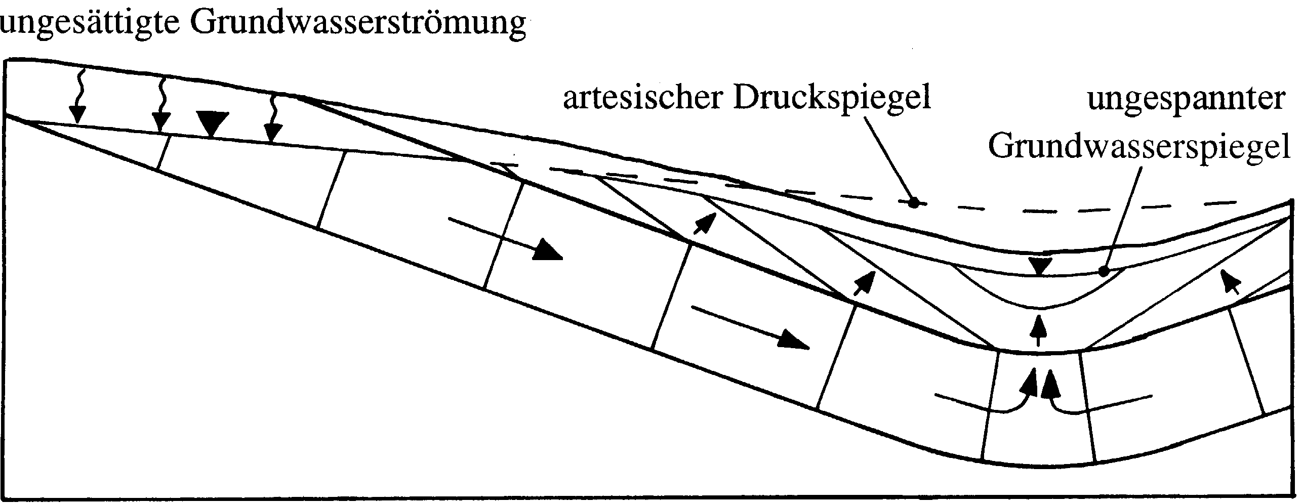 Abb. 14: Schnitt durch einen artesisch gespannten Grundwasserleiter.